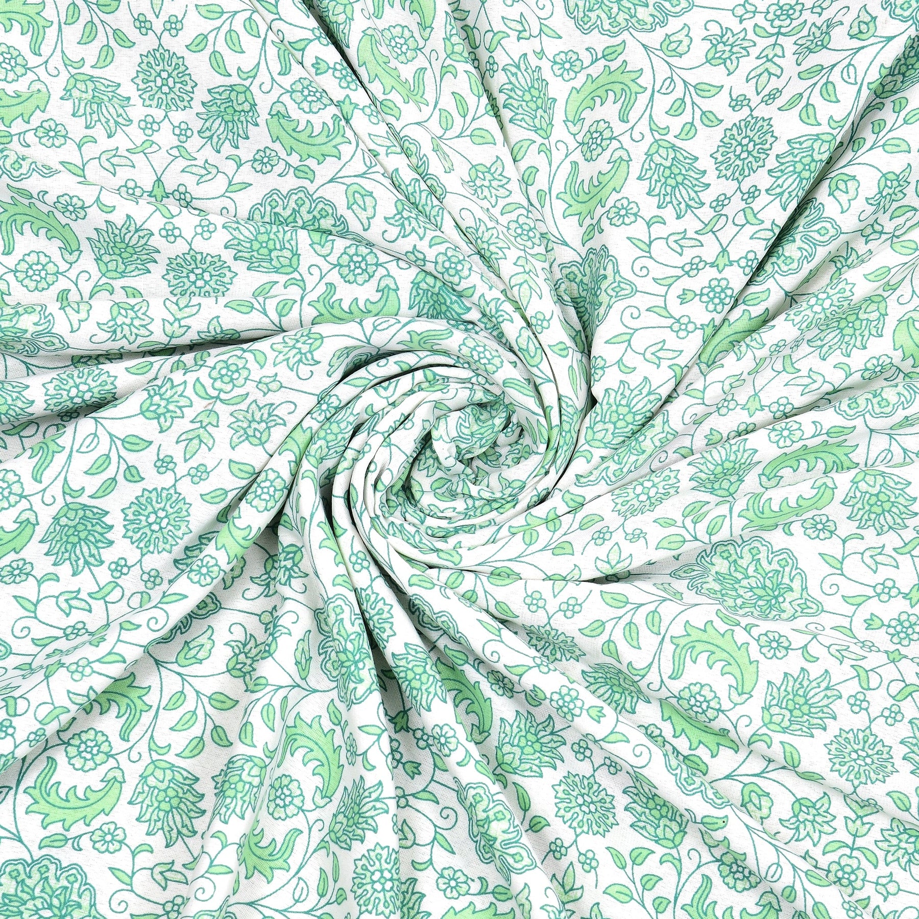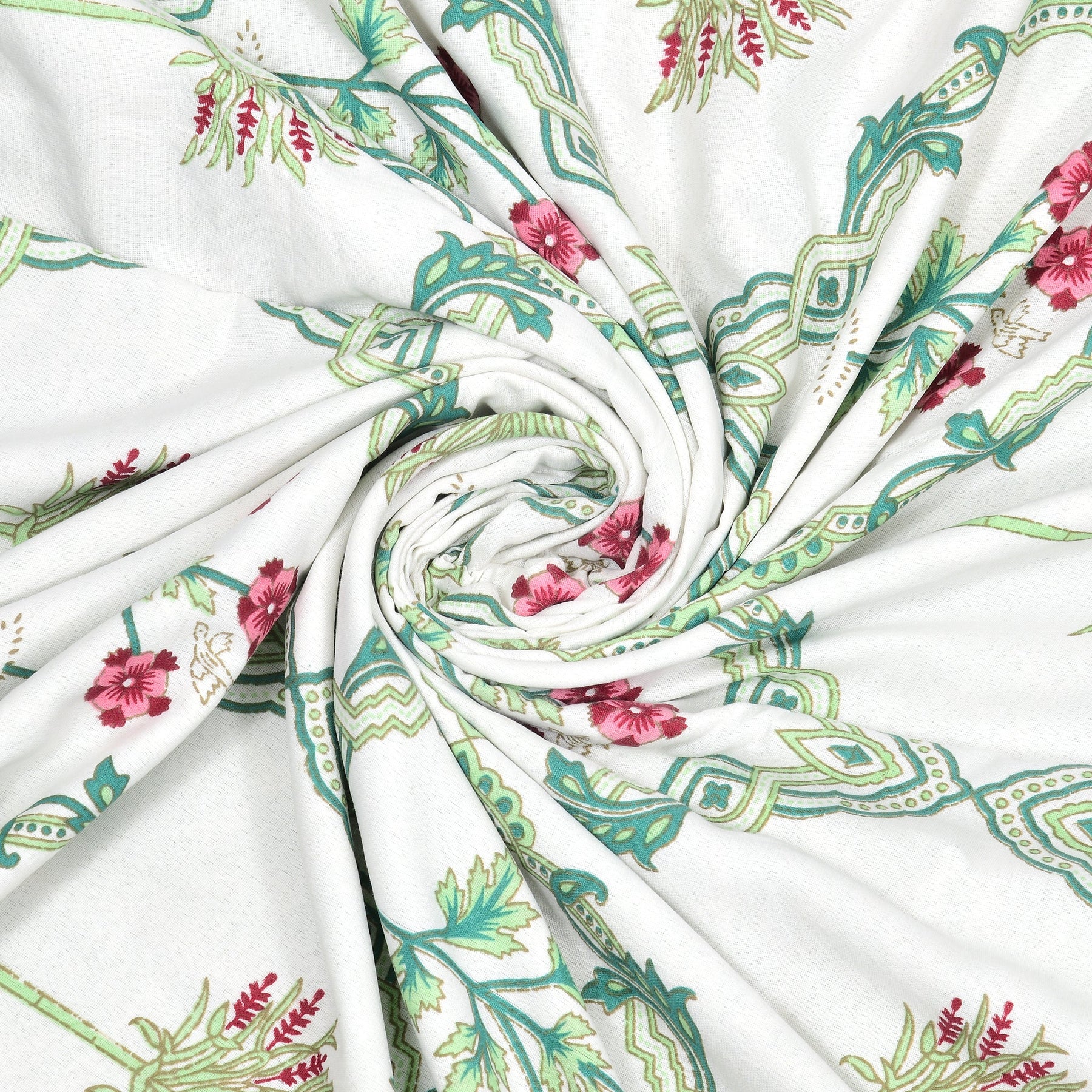 Bella Casa Fashion & Retail Ltd Bedding Set 90 x 108 inch / Green / Cotton 5 PC Bedding Set ( 1 Double Bedsheet with 2 Pillow Covers & 2 Reversible Single Dohar ) Floral Design Cotton Green Colour - Oasis Bedding Set