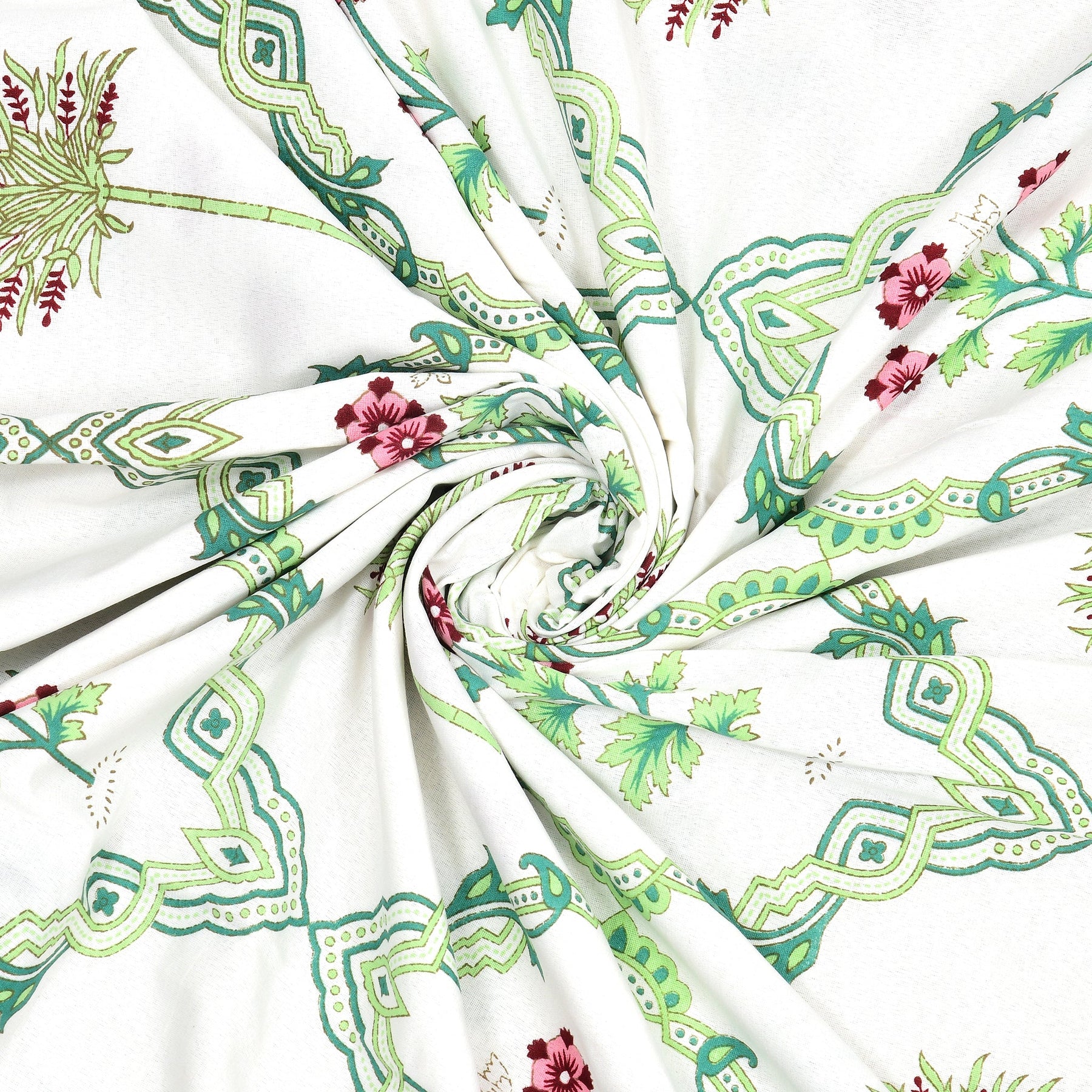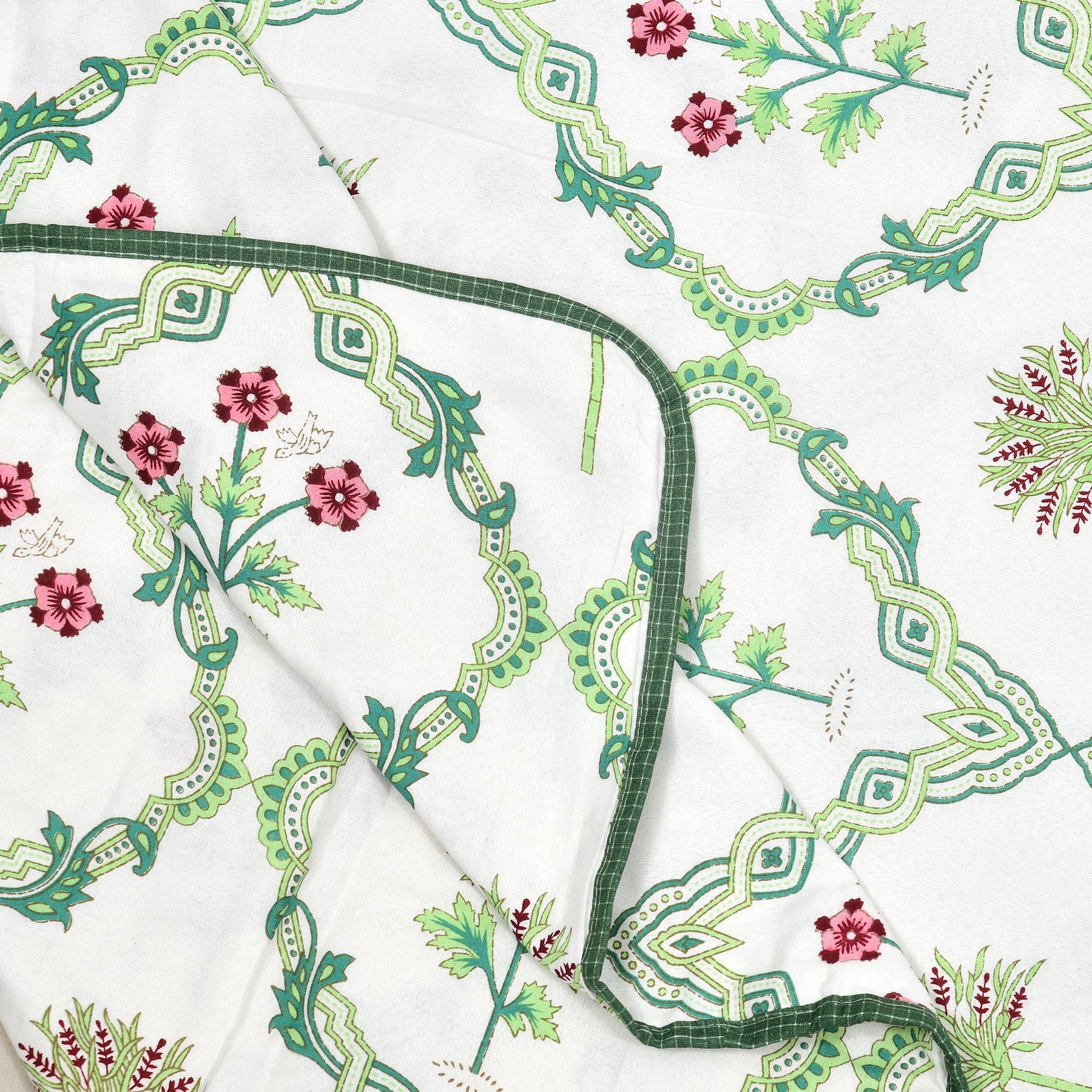 Bella Casa Fashion & Retail Ltd Bedding Set 90 x 108 inch / Green / Cotton 5 PC Bedding Set ( 1 Double Bedsheet with 2 Pillow Covers & 2 Reversible Single Dohar ) Floral Design Cotton Green Colour - Oasis Bedding Set