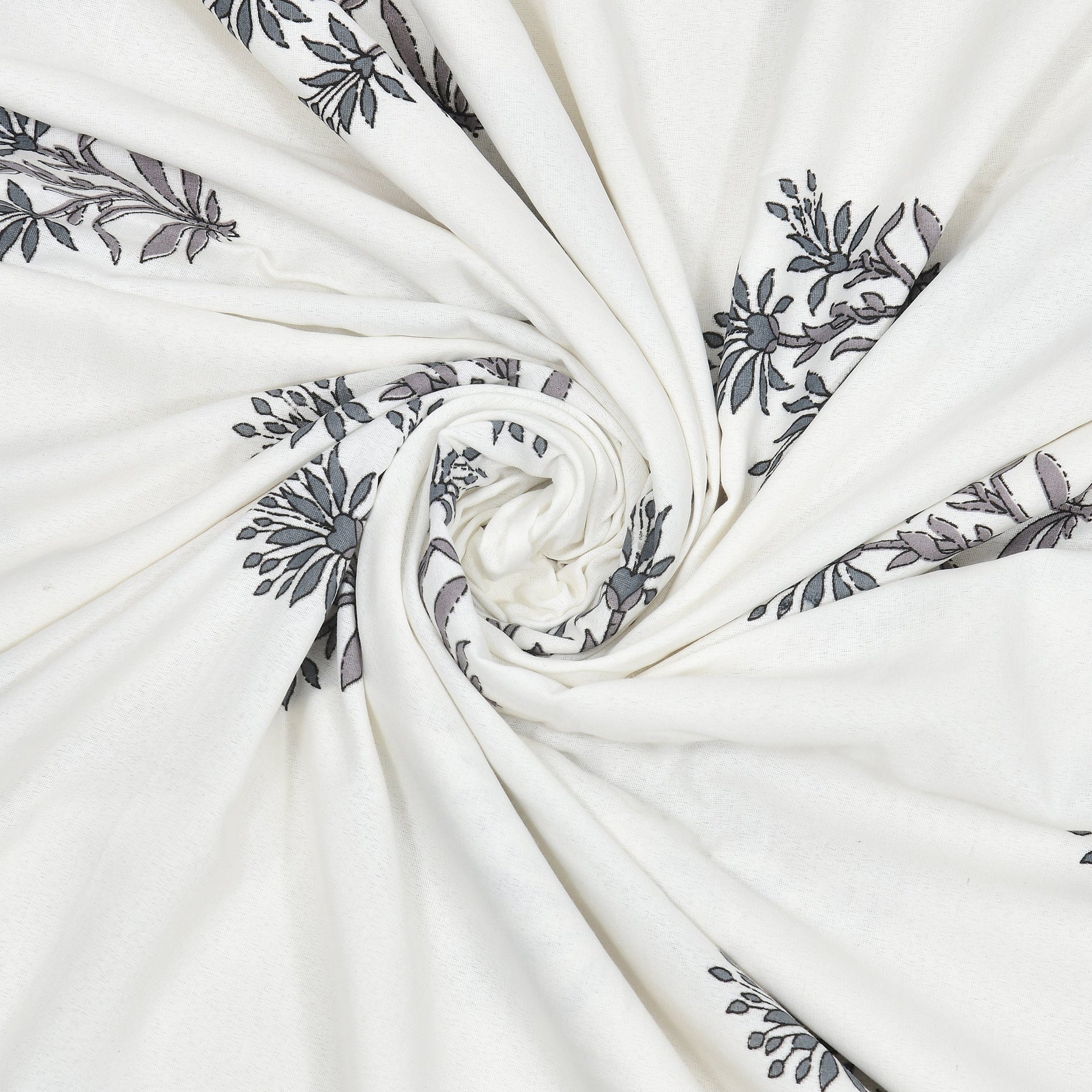 Bella Casa Fashion & Retail Ltd Bedding Set 90 x 108 inch / Grey / Cotton 5 PC Bedding Set ( 1 Double Bedsheet with 2 Pillow Covers & 2 Reversible Single Dohar ) Floral Design Cotton Grey Colour - Oasis Bedding Set