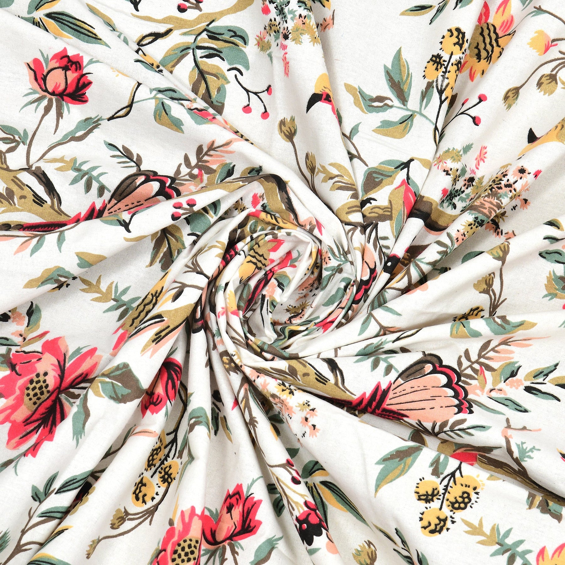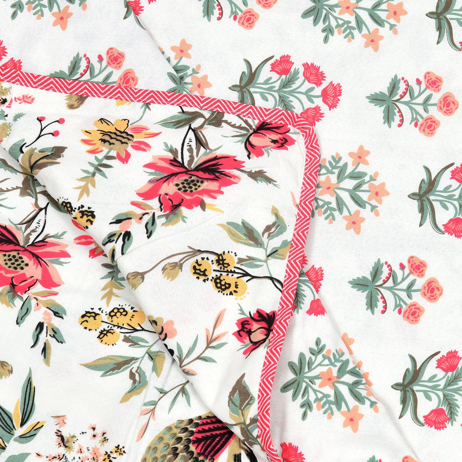 Bella Casa Fashion & Retail Ltd Bedding Set 90 x 108 inch / Multi / Cotton 5 PC Bedding Set ( 1 Double Bedsheet with 2 Pillow Covers & 2 Reversible Single Dohar ) Floral Design Cotton Multi Colour - Oasis Bedding Set