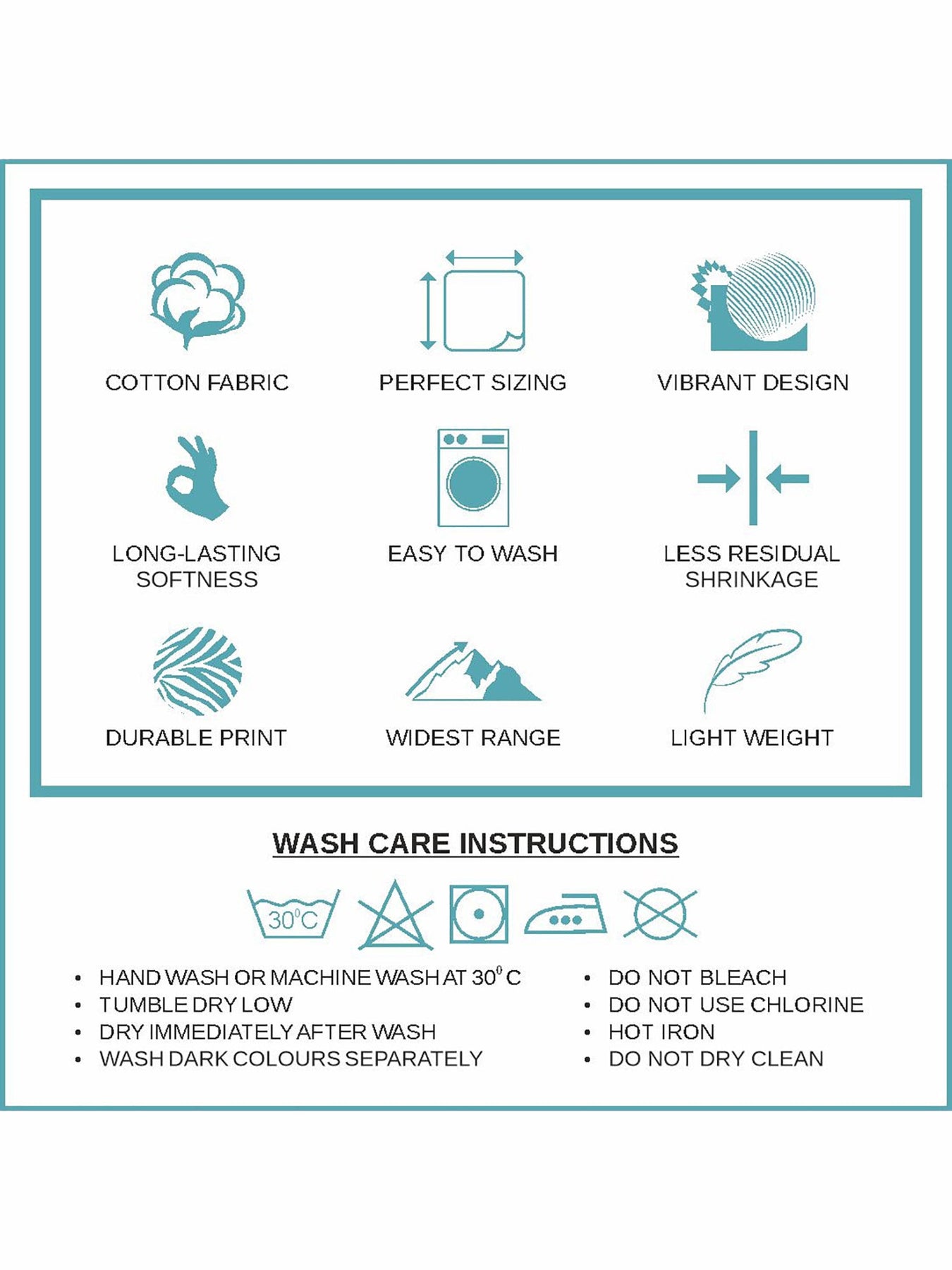 • QUALITY CHECKS: Extensive product checks and regular quality audits ensure responsible use of chemicals. The fabric is then tested for meeting performance like no pilling, shrinkage, colour fastness, tear strength, before being individually measured and stitched to perfection. Then it is inspected, piece by piece, to be defect free and packed as a set