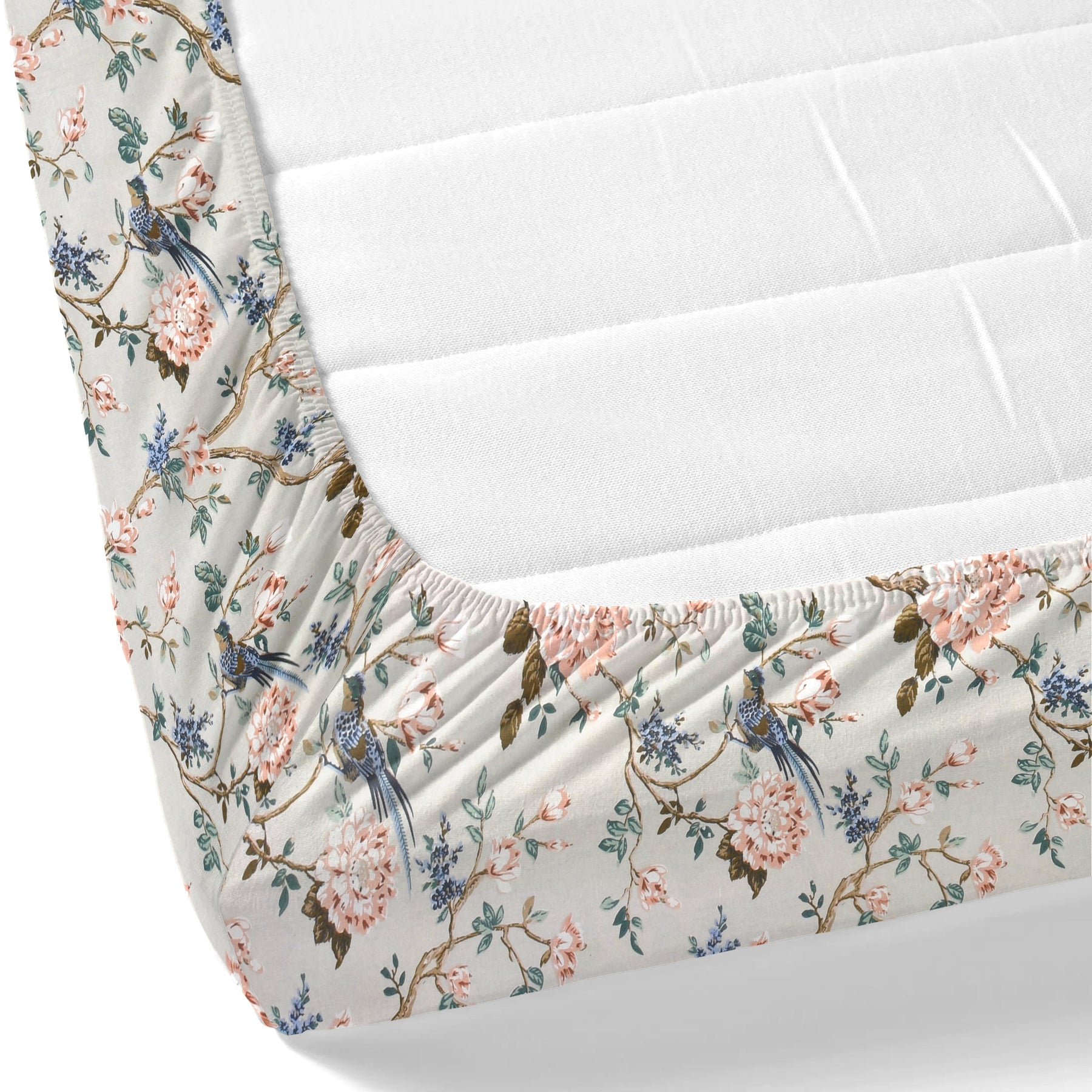 Double Fitted Bedsheet Set 100% Cotton with 2 Pillow Covers Floral Design Multi Colour - Scarlet Collection