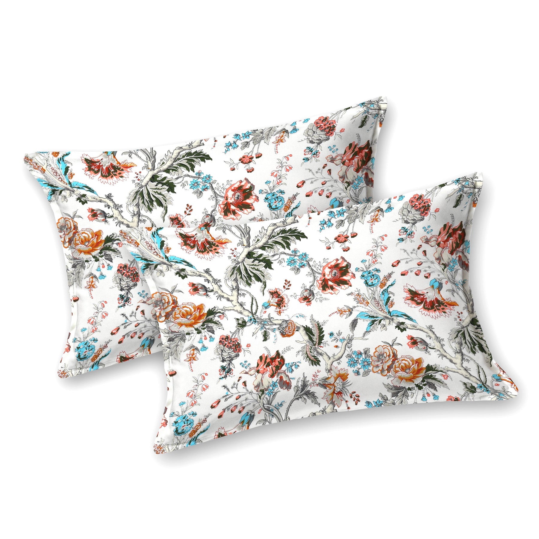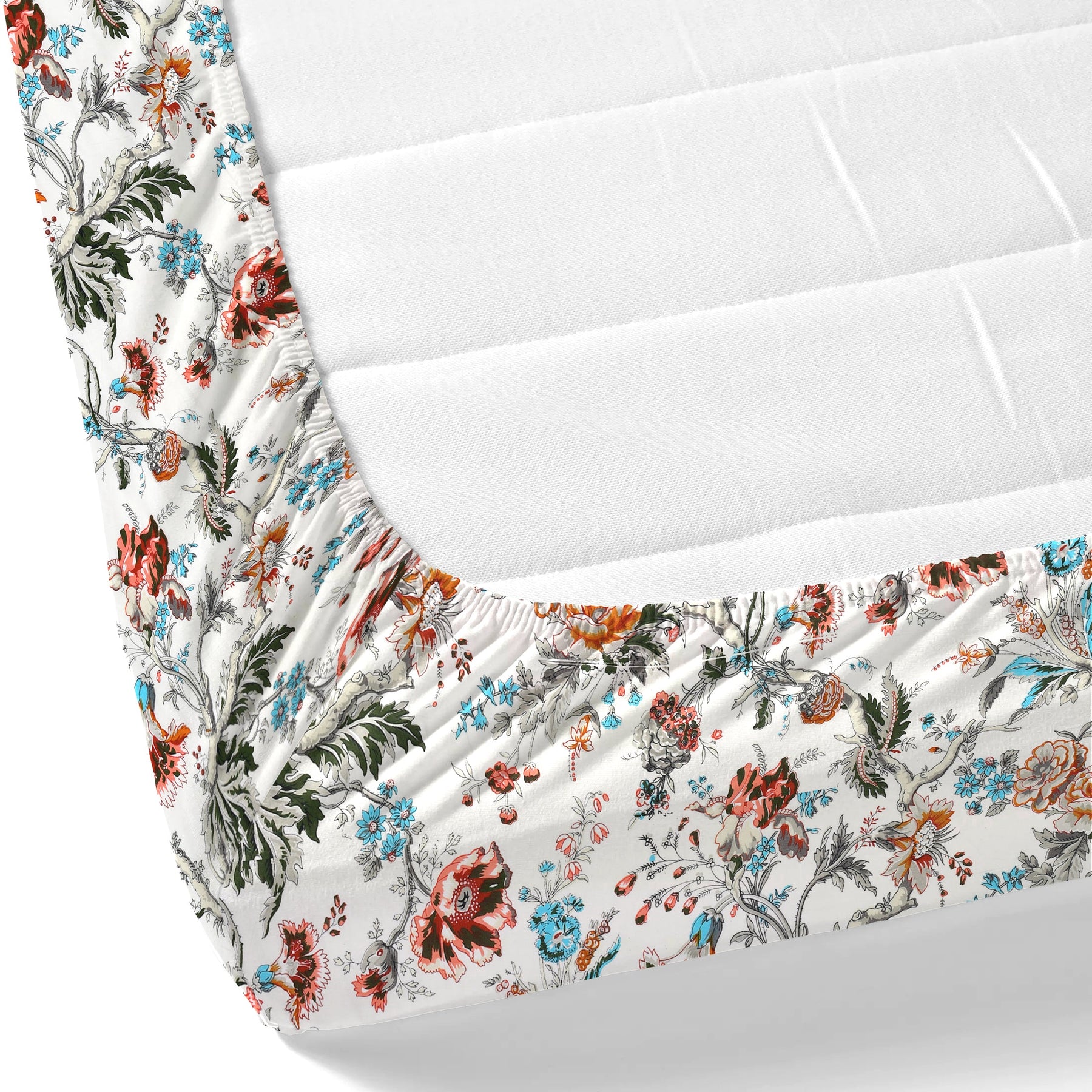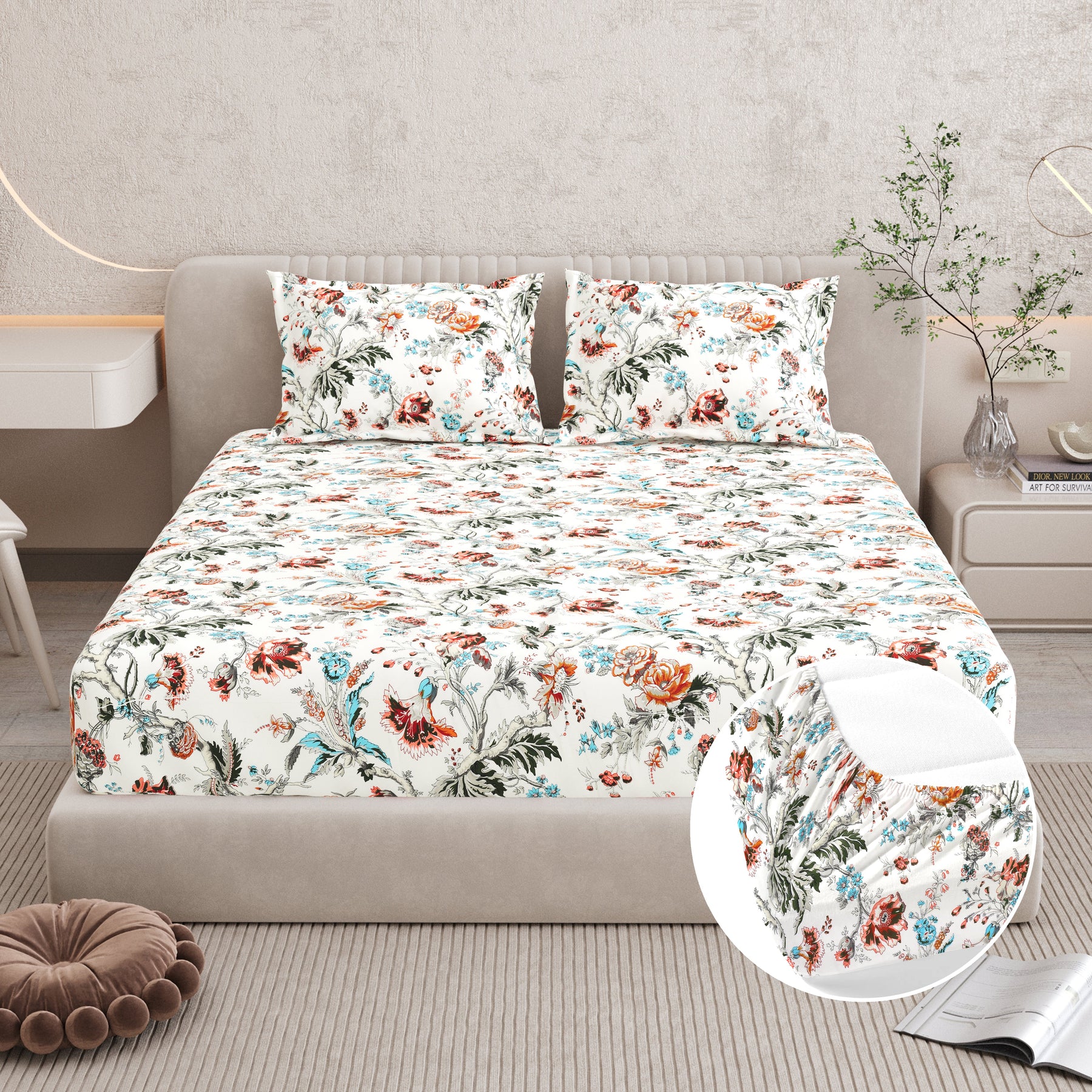 Double Fitted Bedsheet Set 100% Cotton with 2 Pillow Covers Floral Design Multi Colour - Scarlet Collection