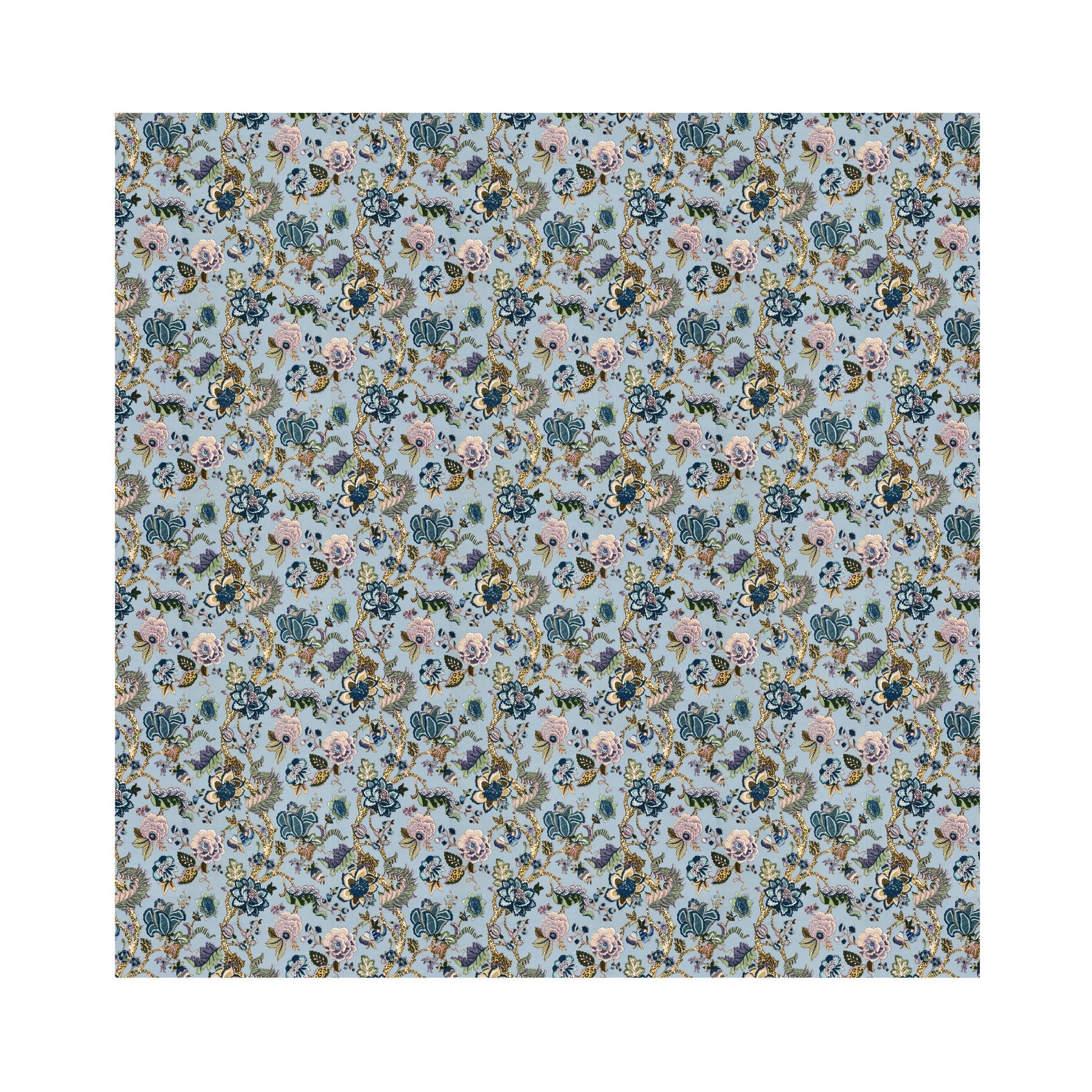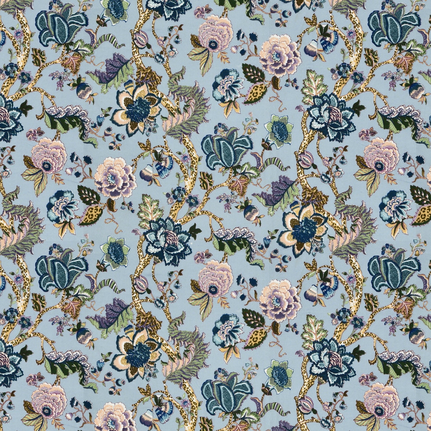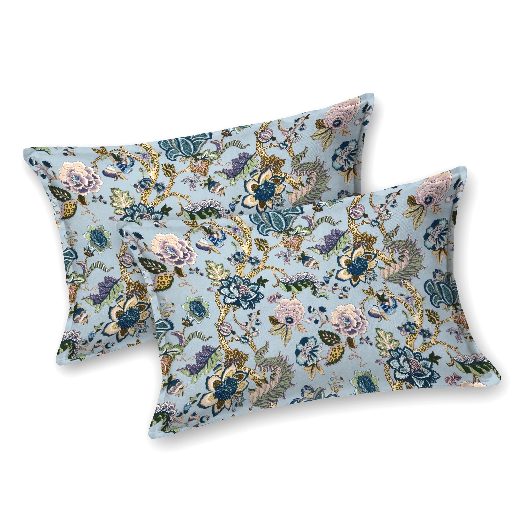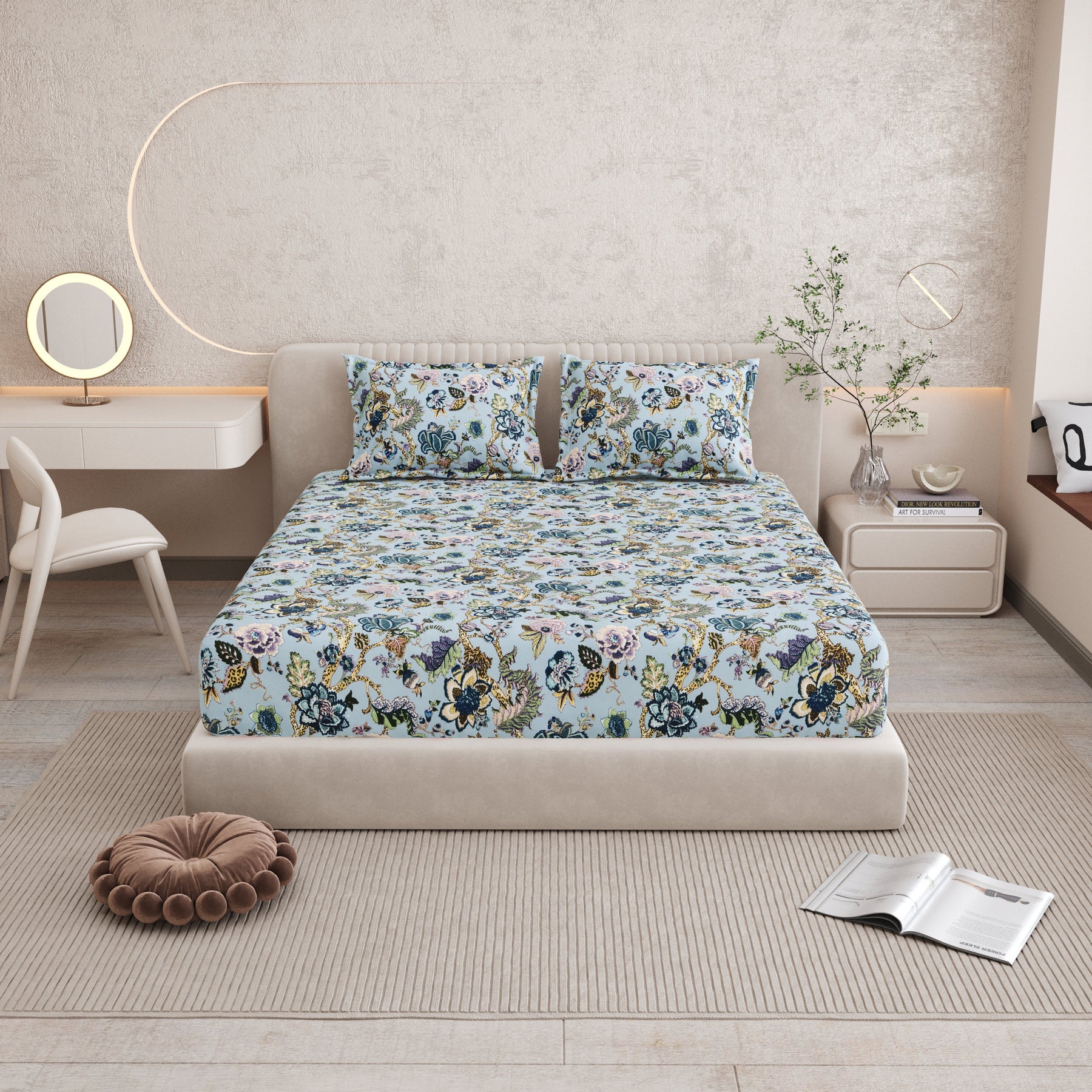 Double Fitted Bedsheet Set 100% Cotton with 2 Pillow Covers Floral Design Blue Colour - Scarlet Collection